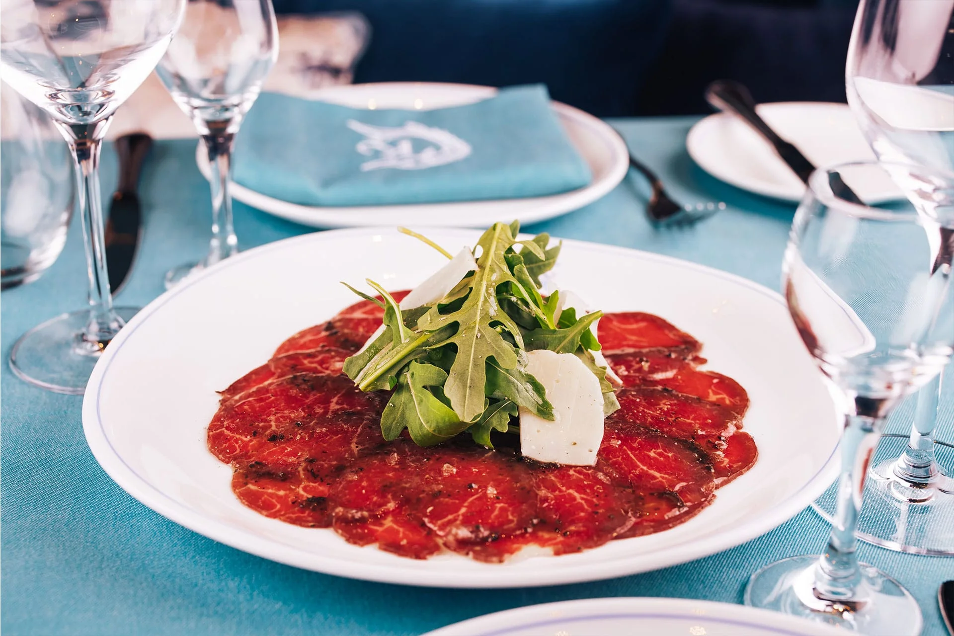 Open for lunch and dinner, the restaurant interior and its terraces are inviting and intimate, with classic elements blending with modern aesthetics.