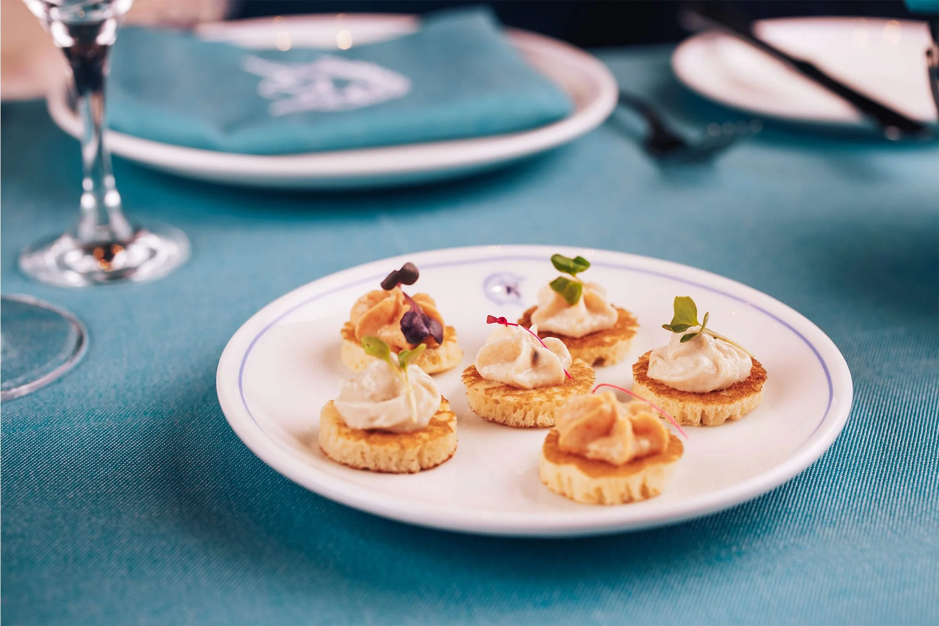 Kaspia at home delivers only the best for your special occasion, be it a social event, an intimate dinner, or even a luxurious birthday celebration. Bringing everything Kaspia straight to your doorsteps and transforming your space with the signature stunning blue table arrangement, music and more, the Kaspia team will take care of you from beginning to end. A customized menu by Kaspia's Executive Chef will include the best French and Russian delicacies, from canapés and Kaspia’s signature dishes to the famous Medovik, along with a selection of curated Kaspia wines and Champagne. Kaspia will ensure every element is prepared for you to have an unforgettable dining experience!